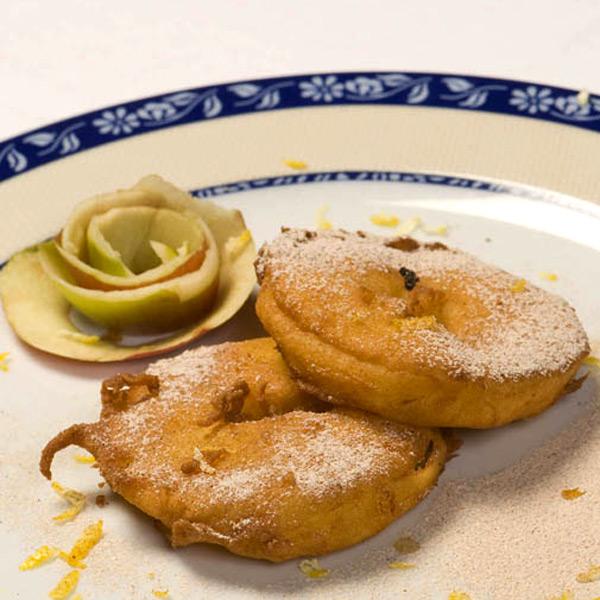 Od sastojaka napraviti tijesto kao za palačinke, ali nešto gušće. Zagrijati ulje za prženje, pa ploške jabuka obložiti tijestom, staviti u ulje da porumeni s obje strane, vaditi na papirnati ručnik da se ocijedi suvišna masnoća. Vruće posuti prah šećerom i cimetom.