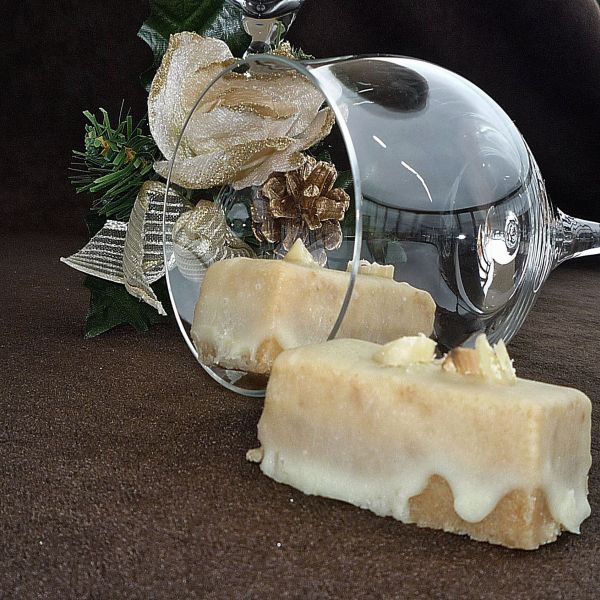 Za nadjev rastopiti na pari čokoladu uz dodatak slatkog vrhnja. Pjenasto izmiksati šećer i jaje. Dodati omekšali maslac uz stalno miješanje. Na kraju umiješati mljevene kekse i smjesu rastopljene bijele čokolade i slatkog vrhnja. Premazati nadjev preko podloge i ponovno staviti na hlađenje dok se ne stisne. Kad je dobro ohlađeno i prilično tvrdo, izrezati na male pravokutnike.