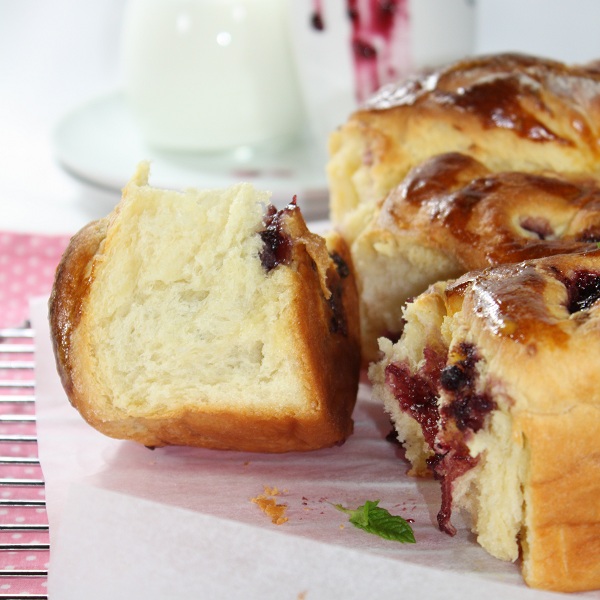 Dignuto tijesto razvaljajte u pravokutnik i premažite omekšalim maslacem i šećerom. Za tim žlicom rasporedite u manjim hrpicama marmeladu, a za tim i pospite suhim voćem. Rub tijesta premažite razmućenim žumanjkom i tijesto uz pomoć krpe ili stolnjaka savijte u roladu. Roladu izrežite oštrim nožem na devet kriški, poslažite ih u četvrtasti kalup obložen papirom za pečenje, a potom ih ostavite da se dižu još 15-tak minuta. Za to vrijeme zagrijte pećnicu na 180 C.