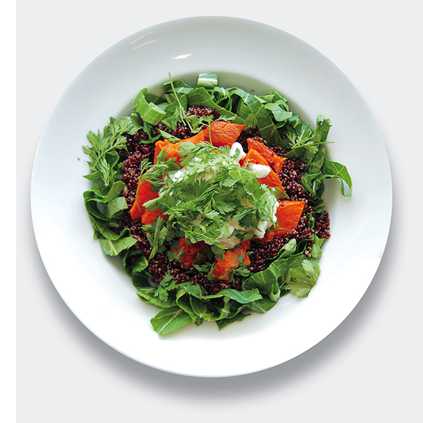 Salata pečeni slatki krumpir, kvinoja i svježi kravlji sir