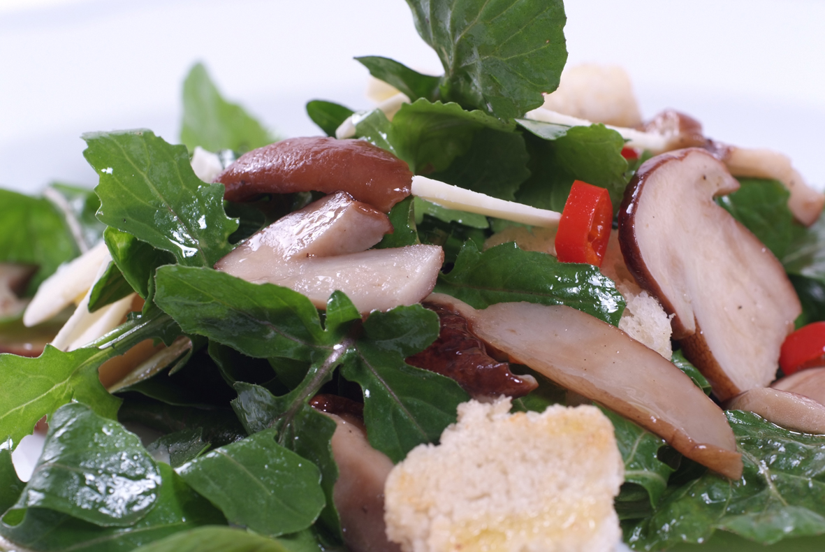 Vrganje očistite, narežite na tanke listiće, posolite ih, dodajte limunov sok, ulje, te sitno narezanu ljutu papričicu. Nakon toga dodajte salatu (matovilac, rikuku ili maslačak), popečeni kruh narezan na razne oblike, tvrdi kravlji sir nareza na listiće.