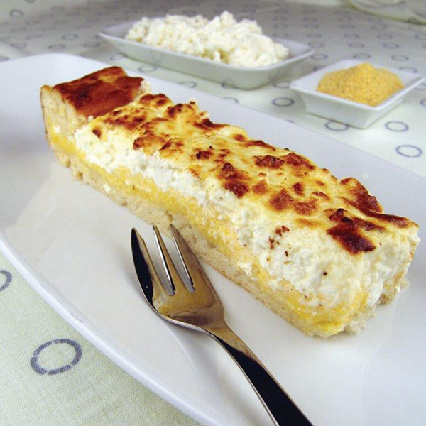 Izmrvite kvas, dodajte malo brašna, jednu žlicu šećera, zalijte mlakim mlijekom i pustite da se nadiže. Preostalo brašno prosijati u posudu, posoliti, dodati dignuti kvas i umijesiti tijesto. Ostaviti ga pola sata na toplome. U međuvremenu pripremite nadjev. Na mlijeku ukuhati kukuruznu krupicu, dodati polovicu jaja, posoliti i pustiti da se malo ohladi. Nadjev mora biti rahli, ne pretvrdi. Tijesto razvaljati i položiti ga na maslacem premazanu tepsiju, a rubove malo podignuti. Premazati nadjevom od kukuruzne krupice.