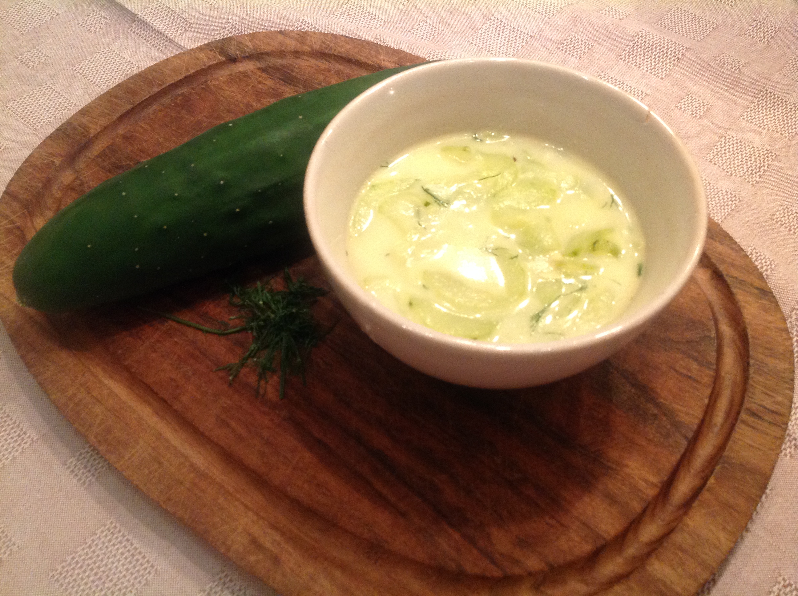 Krastavce oguliti i narezati na tanke ploškice, posoliti i ostaviti da odstoje dok ne puste vodu,dobro iscjediti.