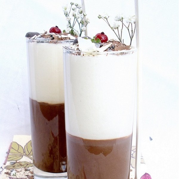 Na isti način napravite mousse od bijele čokolade pa ulijte u čaše preko moussa od tamne čokolade.