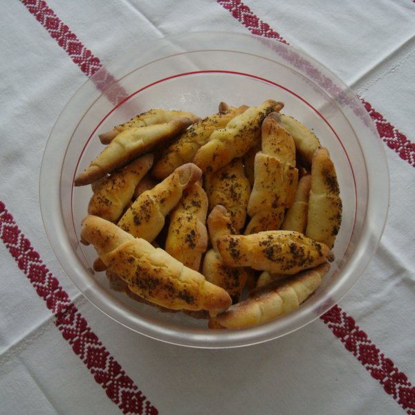 5. Klipiće slažite na lim, obložen s papirom za pečenje, premažite ih s umućenim jajetom, posipajte sezamom, kimom ili krupnom soli