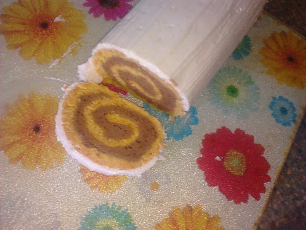 biskvit nisam mazala sa sirom već kremom a rolat je ukusan probajte.Mrkva se ne osjeti nimalo nit iko zna da je unutra ona samo da sočnost biskvitu.