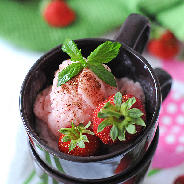 Ovaj sladoled spremim za 2 minute. Posebno je ukusan kad imam domaće jagode iz našeg vrta (ako ih brat ne pobere prije mene jer tada ne strignu do ove slastice).